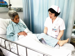 当第一缕晨光穿过薄雾,林细妹的身影已经在医院穿梭。在区中医院骨六科病房,她每天都面对骨折、外伤病人,很多时候,病人会因为疼痛而产生不良情绪。曾经有一名103岁的老婆婆,因“股骨颈骨折”入院,由于害怕手术而拒绝治疗,在病床忍受着痛苦。看着103岁高龄的婆婆受尽疼痛折磨,林细妹她去问医生,“婆婆的病一定要手术吗?”了解到婆婆年纪虽大,但身体硬朗,而且骨折比较严重,只有手术治疗才能减轻疼痛之后,她试图说服婆婆接受手术。第一次,婆婆断然拒绝。第二次,第三次……她拉着老人家的手,听婆婆讲以前年轻时的艰辛,慢慢取得老婆婆的完全信任。后来,林细妹又再一次提起手术的种种好处,这一次,老家人同意了。术后经过20多天的护理,老人家精神抖擞地康复出院。“幸好遇到你!”出院时,婆婆紧紧地握着林细妹的手激动地说。