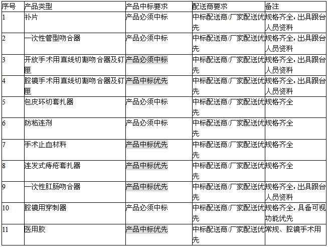 二、产品要求:所投产品为2008年广州市A组医用耗材中标产品为主