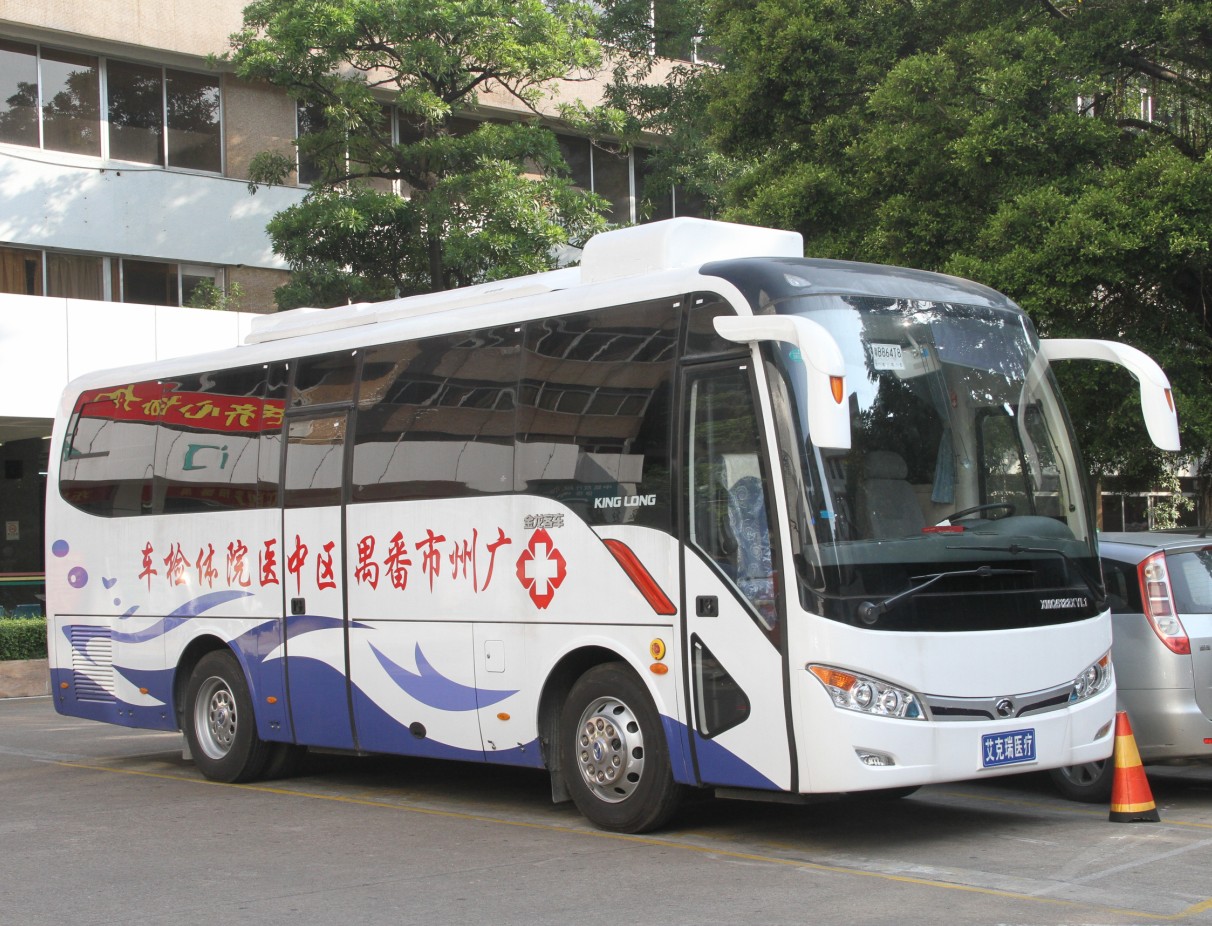 9月25日上午10时,一部天蓝色边底、白色面的崭新“金龙客车”缓缓驶进了我院东区停车场。这是我院最新购置的大型体检专用车。这辆车长9米,车内配置有胸透机、心电图、B超等设备,并设有专门的抽血空间。