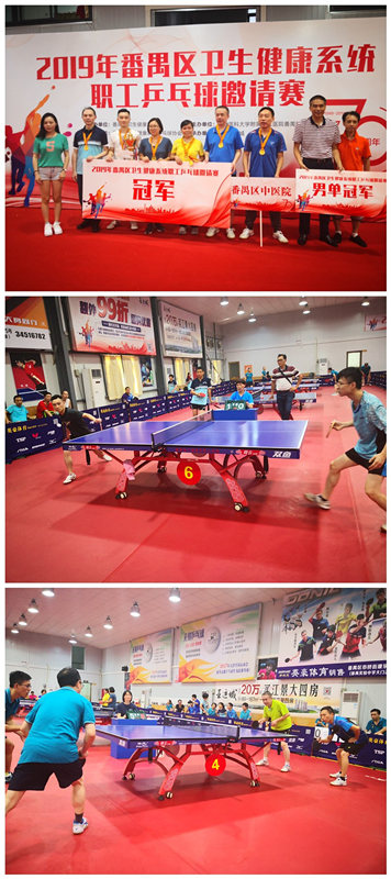 7月27日,2019年番禺区卫生健康系统职工乒乓球邀请赛在番禺区乒乓球协会举行,来自区卫生健康系统各单位9支代表队参加了比赛。经过激烈角逐,我院取得团体冠军和男单冠军的佳绩。