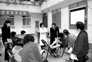 不仅如此,刘医生还为大家进行现场的按摩示范,一位阿姨自告奋勇地当了一回“模特”。有些人为了看得更清晰,还走到台前边听边看。阿姨说,医生帮她按摩之后,觉得很舒服。经过刘医生认真的讲解以及现场的示范,大家似乎都学到了一些知识。一位60多岁的阿姨告诉记者说,她平时都没有中老年膝痹病按摩护理等方面的知识,听了刘医生的讲座之后,在以后的生活中,她就能按照医生讲的去做一些简单的按摩。此外,经听众要求,刘医生还认真地将膝痹病的中药外洗方抄下来复印发给大家,叮嘱大家按照方剂上的要求进行熏洗治疗。