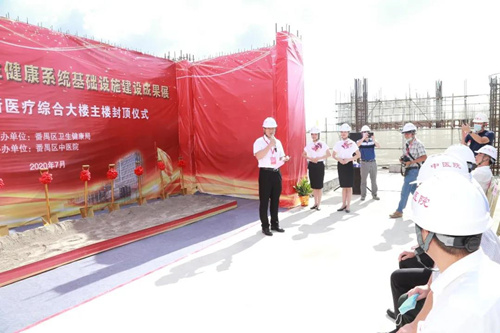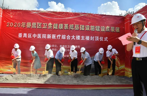 领导嘉宾为番禺区中医院扩建医疗综合大楼工程浇筑封顶