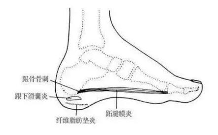 足底及足跟周围软组织病变引起的足跟痛是临床中最为常见的一类,医学上称为“跟痛症”,是一种以足跟部周围反复疼痛不适为主要症状的临床常见病和多发病。其中包括跟骨滑囊炎、足底跖筋膜炎、跟下脂肪垫炎及脂肪垫退化、跟腱(周围)炎及跟腱变性,这类是造成足跟痛最常见的原因。
