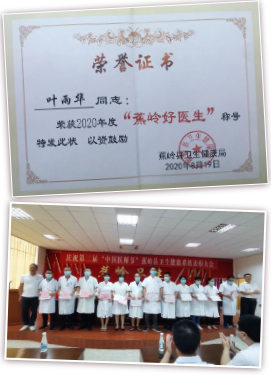 叶雨华从2019年1月开始到蕉岭县中医医院帮扶(挂职副院长)至今,通过医疗技术、人才培养、学科建设、运营管理等方面对该院进行全方位帮扶。他带领当地医生率先开展了纤维支气管镜下肺泡灌洗术多种新的诊疗技术和侵入性操作,并通过授课、教学查房、示范操作教学等多种途径,大幅度提升了蕉岭县中医医院及下属医联体在急危重症方面的救治水平。在他和蕉岭县中医医院全体员工的共同努力下,该院内科、骨科、针灸科等多个科室获得梅州市重点专科以及广东省特色专科称号。在年初新冠肺炎疫情来势汹汹时,大年初三,他主动舍弃“小家”回到“大家”,连夜独自驾车近500公里从广州回到蕉岭请战,连续75天与同事们共同战斗在医学隔离观察区等一线阵地。一年多来的帮扶工作及在抗击新冠肺炎疫情的突出表现,他得到了各位同事们和领导们的肯定,荣获了2020年度蕉岭县卫生健康系统“蕉岭好医生”称号。
