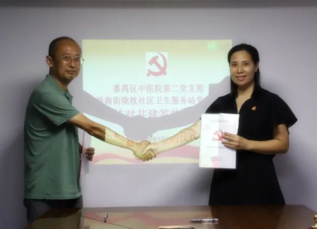 9月9日下午,我院第二党支部和番禺区桥南街陇枕社区卫生服务站党支部签署结对共建协议书,双方正式确定为党建共建单位。
