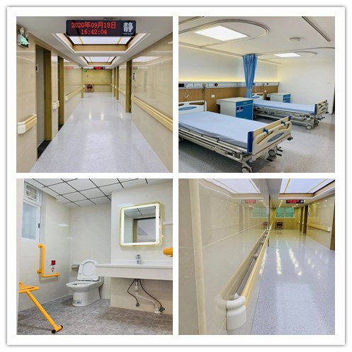 宽敞明亮的走廊均设有圆形墙面扶手,方便行动不便的患者扶握;走廊天花安装音响设备,通过音乐疗法有效舒缓患者情绪;病房配置崭新的现代化病床,全面实行电子床头卡,可实时动态自动获取患者住院信息,有效提高工作效率,并设有一体化床头柜和陪护床,增设床尾栏,保障患者安全;洗手间设有坐厕、紧急呼叫装置、坐浴凳等防滑便捷设备,升级改造后的病房整体功能设置更加合理,流程更加规范,就医环境及工作环境更温馨、舒适。