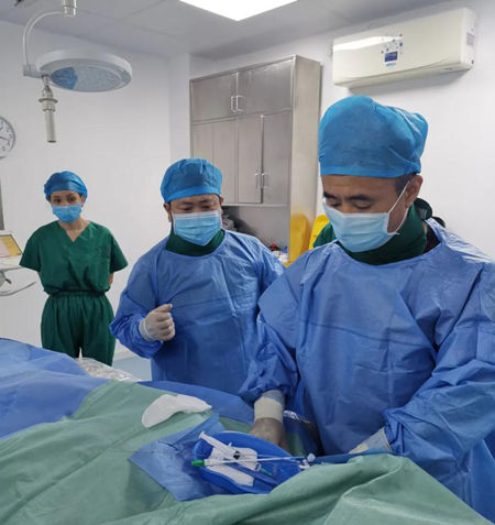 心血管内科祁家祥主任与陈钜深医师为患者实施了下腔静脉滤器置入术,并为患者成功置入可回收腔静脉滤器。手术顺利结束,术后患者无不适反应,安返病房。