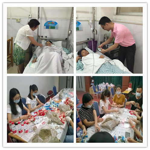 据了解,端午节作为我国一项历史悠久的传统民俗节日,我院已连续5年自制香囊送给患者和员工,今年共做了1600多个,这些香囊是由艾叶、藿香、白蔻仁、白芷、吴茱萸等9味中药配合而成。小小的一个香囊,外表精致“内心”饱满,不仅有效地将传统与时尚、养生与保健相结合起来,还包裹着对患者、员工满满的问候与祝福。