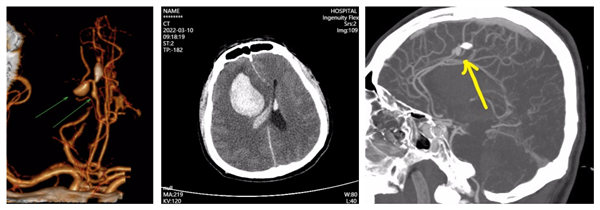 术前颅脑CT及CTA提示脑血肿及动脉瘤情况