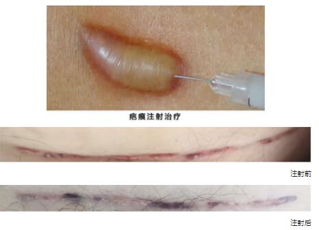 可使用稀释的激素药物,局部注射至疤痕内,约3-4周一次,可使局部疤痕组织萎缩、塌陷。