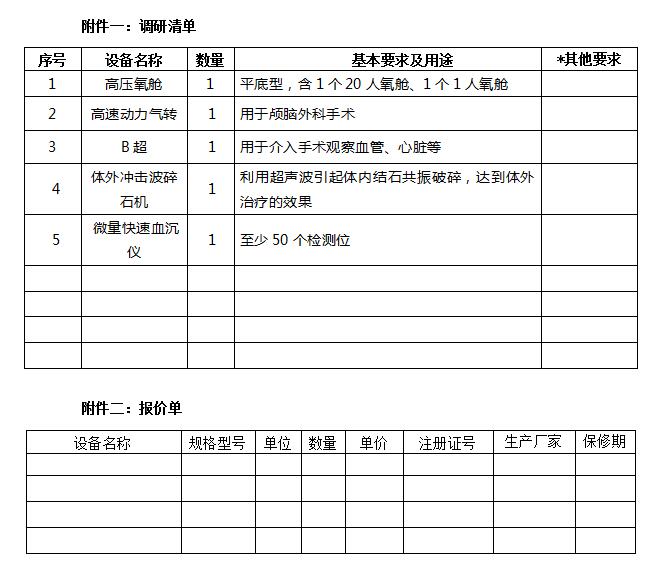 我院拟采购以下设备,现进行需求调研,并接受报名。