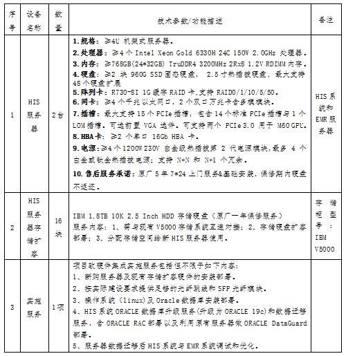 一、项目名称:HIS服务器采购项目。具体设备要求如下表: