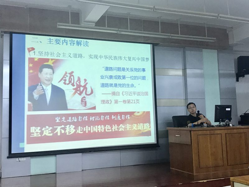 会上,胡洪涛老师以《习近平谈治国理政》第二卷的专题为主线,融合了党的十九大精神和习近平总书记在参加十三届全国人大一次会议广东代表团审议时重要讲话精神内容,深入解读了《习近平谈治国理政》的17个专题,着重解读了全面建成小康社会、全面深化改革、全面依法治国、全面从严治党(四个全面)、引领经济发展新常态、在发展中保障和改善民生、构建人类命运共同体等8个专题内容。胡老师的宣讲,主题鲜明、切近实际,重点突出,对党员干部深入了解习近平新时代中国特色社会主义思想,不断增强“四个意识”、坚定“四个自信”,以及坚定“四个走在全国前列”的强烈使命和责任担当,有着积极的意义。