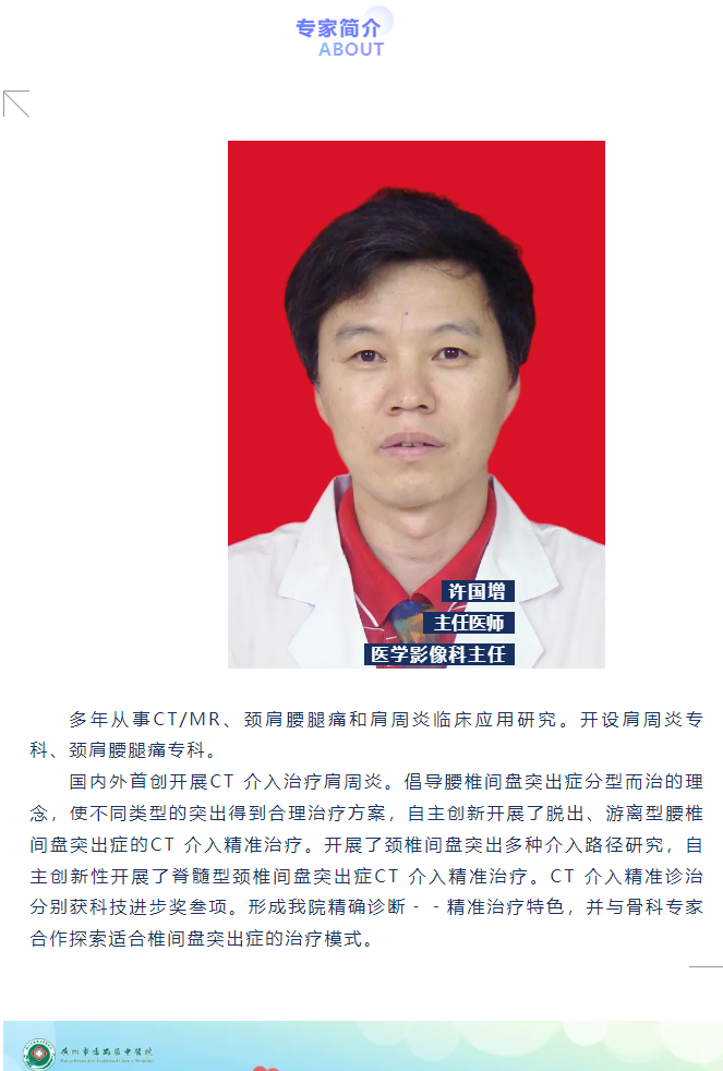 今年9月,柏老师抱着一线希望,来到了广州市番禺区中医院。在这里,他遇到了颈肩腰腿痛专科的许国增主任医师。经过详细检查,发现柏老师纤维环部分撕裂,腰椎退行性变并伴有骶管囊肿。许医生凭借其在腰椎间盘突出症精确诊断到神经根水平的专业能力,以及CT导引细针介入治疗精准到毫米级的精湛技艺,为柏老师带来了希望。