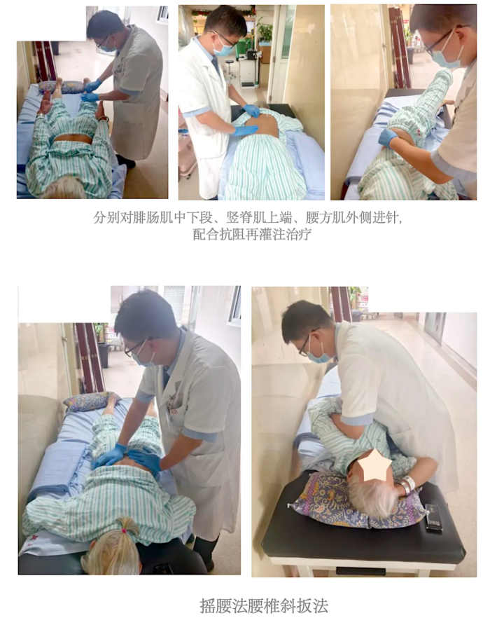 陈凯奇主任医师、刘锋主任中医师认真细致询问病情和查体,结合磁共振结果,考虑吴阿姨为L4/5椎间盘突出合并椎管狭窄。因吴阿姨害怕手术创伤,科室团队反复讨论后,为她定制了“浮针+正骨理筋+中医辅助”的个性化方案。