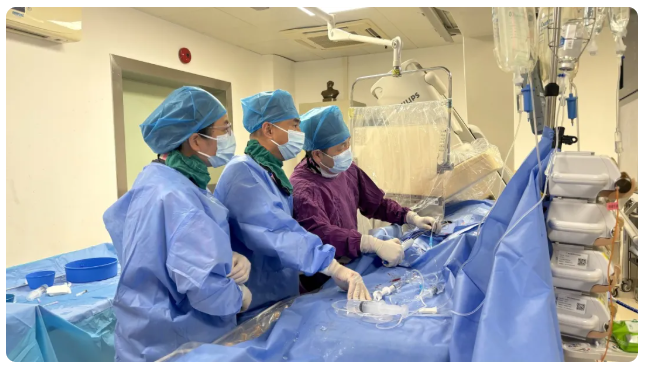 手术在局部麻醉下进行,简婆婆全程保持清醒。在心内科团队与中山大学一附院何建桂教授的默契配合下,通过细致的操作,这颗小小的“胶囊”起搏器经由血管被顺利送达简婆婆的心室,并稳稳地固定在理想位置。参数测试显示起搏功能良好。