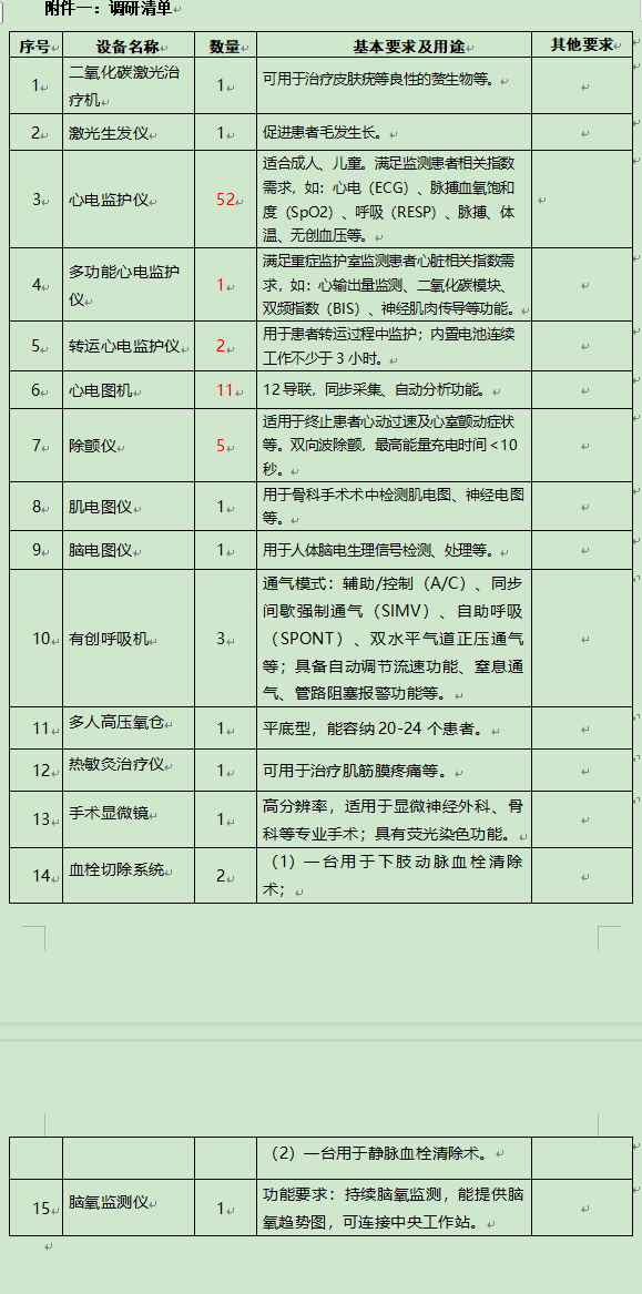 我院拟采购以下设备,现进行需求调研,并接受报名。